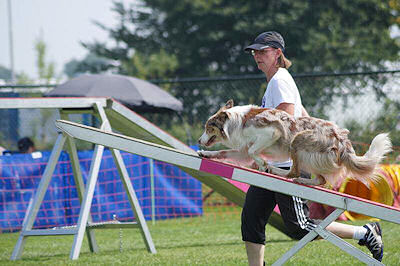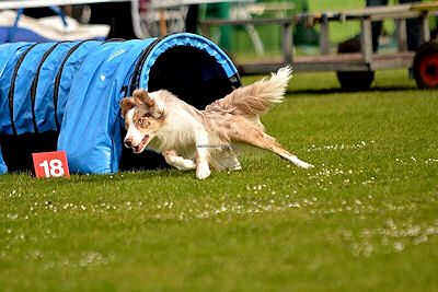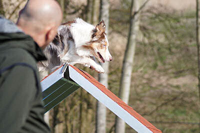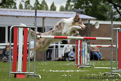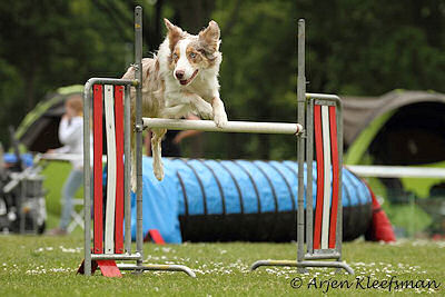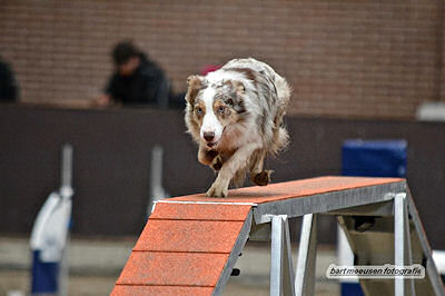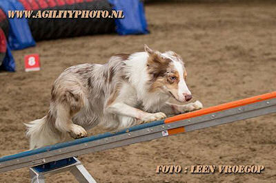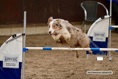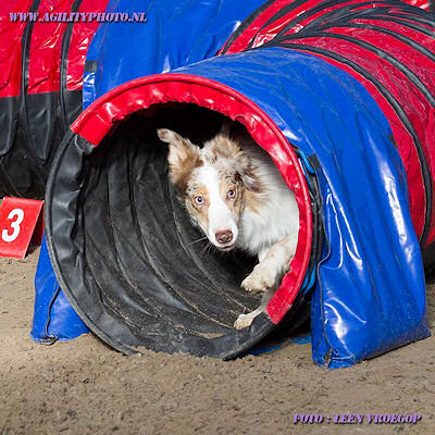 Vachtkleur vererving [Coat colour inheritance]Drager van bruin (b-gen) : is zelf bruin [Carrier of brown (b-gene) : he himself is brown] Drager van tricolor (At-gen) : is zelf tricolor [Carrier of tan markings (At-gene) : he himself is tricolour] Drager van merle (m-gen) : is zelf merle [Carrier of merle (m-gene) : he himself is merle] |
