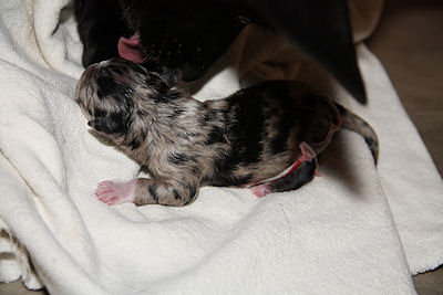 Teef 1 Blue Merle Wit puntje aan haar staart |