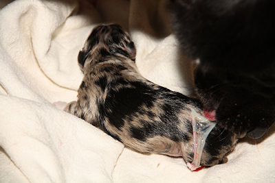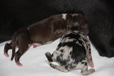 Reu 1 Chocolate (fantom) Merle Tan Merle aan de binnenkant achterpoten wit puntje aan zijn staart |