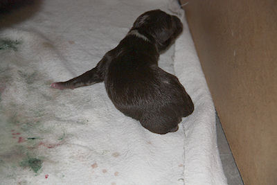 Teef 5 Chocolate Wit puntje aan haar staart Groen bandje |