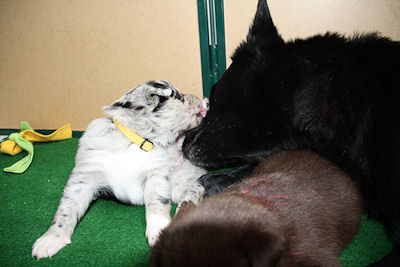 Daar de Kelpie uit de "collies" komt is dit geen 'vreemde' kruising.