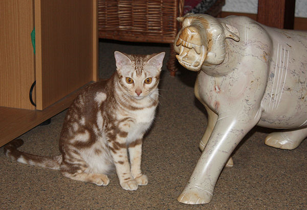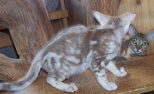 Sully is a female with a soft character, and she is very good with our Ocicat girls.
